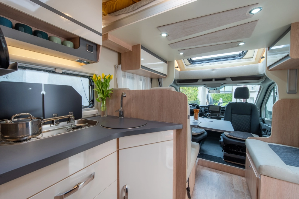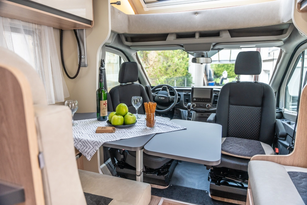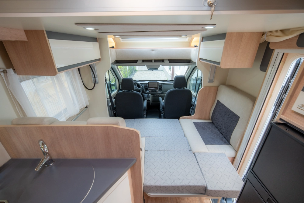Ford Siena 395 spĺňa všetky vaše potreby. Siena 395 sa bude páčiť každému, kto oceňuje priestor a pohodlie. Má veľkú kúpeľňu s toaletou a sprchovacím kútom s teplou vodou. Priestranná kuchyňa má dva plynové sporáky, zásuvky s mäkkým zatváraním a chladničku s mrazničkou. Siena 395 má 5 veľkorysých miest na spanie. Siena 395 je ideálny na cesty počas chladnejších mesiacov, pretože nemá výsuvnú strechu, všetko je izolované a je vybavený útulnou a teplou parkovacou klimatizáciou. Veľký batožinový priestor ponúka dostatok miesta na ďalšiu batožinu, napríklad outdoorové vybavenie. Tempomat, zadná kamera, Bluetooth, USB, GPS a digitálny kokpit zabezpečujú bezpečnosť a zábavu aj počas jazdy.